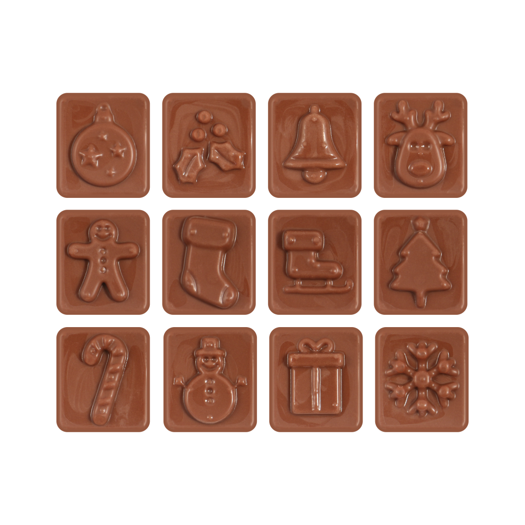 Sugar, cocoa butter, MILK powder, cocoa mass, emulsifier: sunflower lecithin, vanilla extract. Milk Chocolate contains: Cocoa Solids 35%, Milk Solids 23% minimum ALLERGY ADVICE: For allergens, see ingredients in CAPITALS. WARNINGS: May contain Nuts.