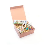 Each treat or collection can be personalised with full colour digital printing. Send us your artwork and we’ll add your branding or message to the eco egg box, eco maxi cube, organza bag ‘n’ tag, eco box and postal box sticker inside.