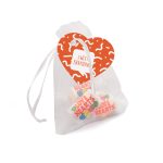 A smart little Organza Bag filled with x3 Love Heart Rolls. Branded with a heart shaped tag.