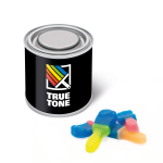 A Small Paint Tin filled with a pack of gummy Paint Brushes.